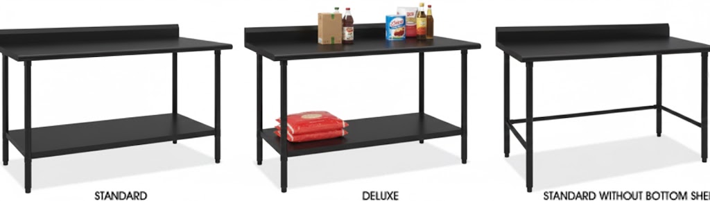 Standard – Galvanized legs and shelf. Plastic leveling feet. Type 430 top.