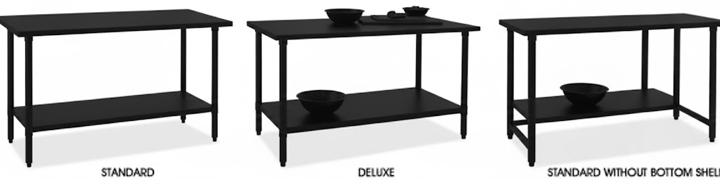 Standard – Galvanized legs and shelf. Plastic leveling feet. Type 430 top.