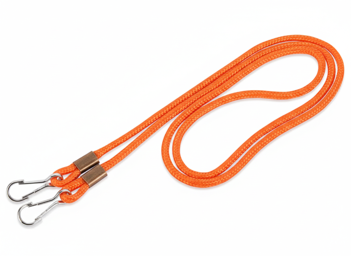 Basic lanyard. Round woven nylon with 2 swivel hooks. 38″ long. Keeps mask handy when not in use. Use with Pre-punched Sleeves.
