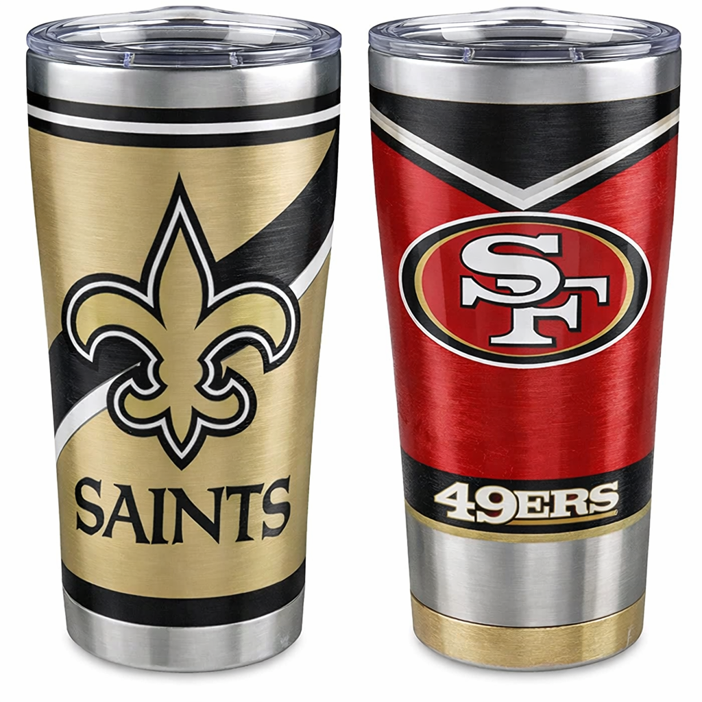 Beverages stay hot or cold while you cheer on your team. Vibrant team colors and logos. Double-wall insulated stainless steel. Easy closing with a leak-resistant lid.
