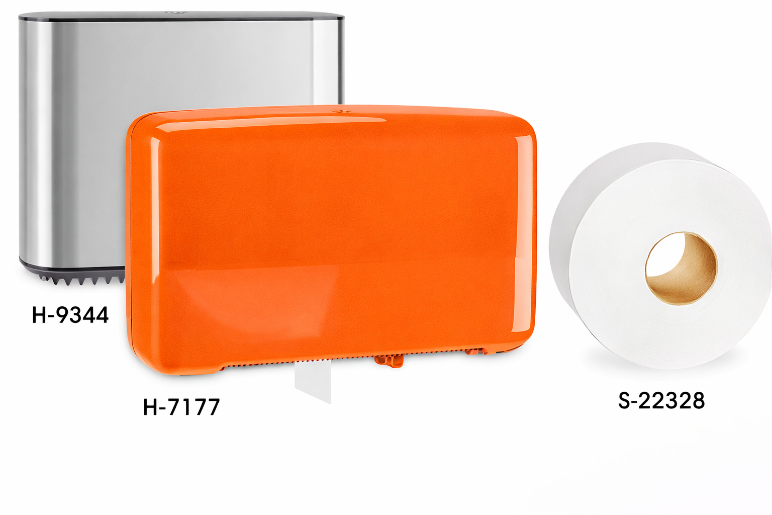 Plastic Double Dispenser – Holds two Tork® 7.4″ diameter mini jumbo rolls.