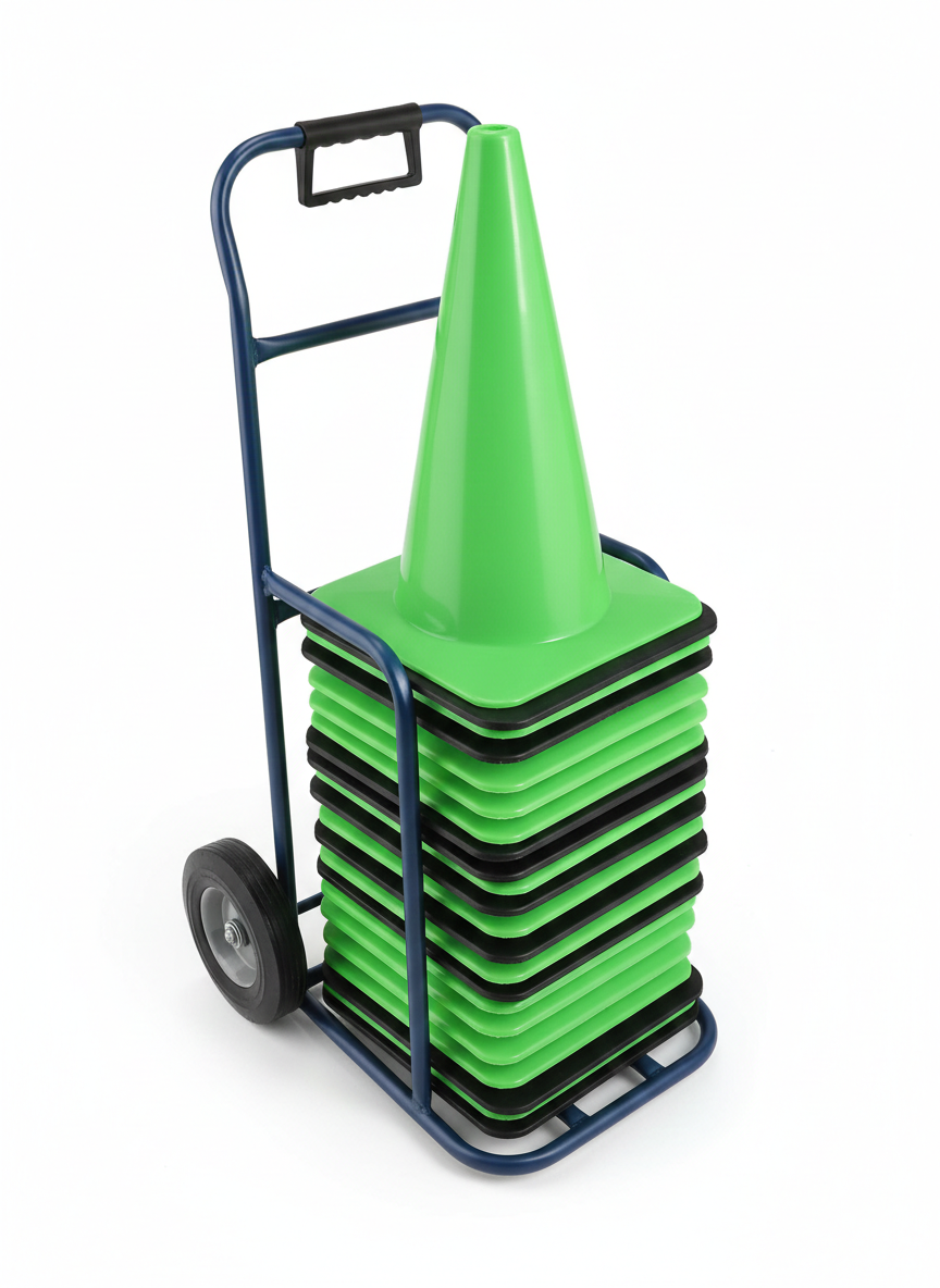 Easily transport cones on 10″ wheels. Heavy duty steel construction. Holds up to 500 lbs. Mix and match various cone sizes. Use with Traffic Cones and Heavy Duty Traffic Cones.