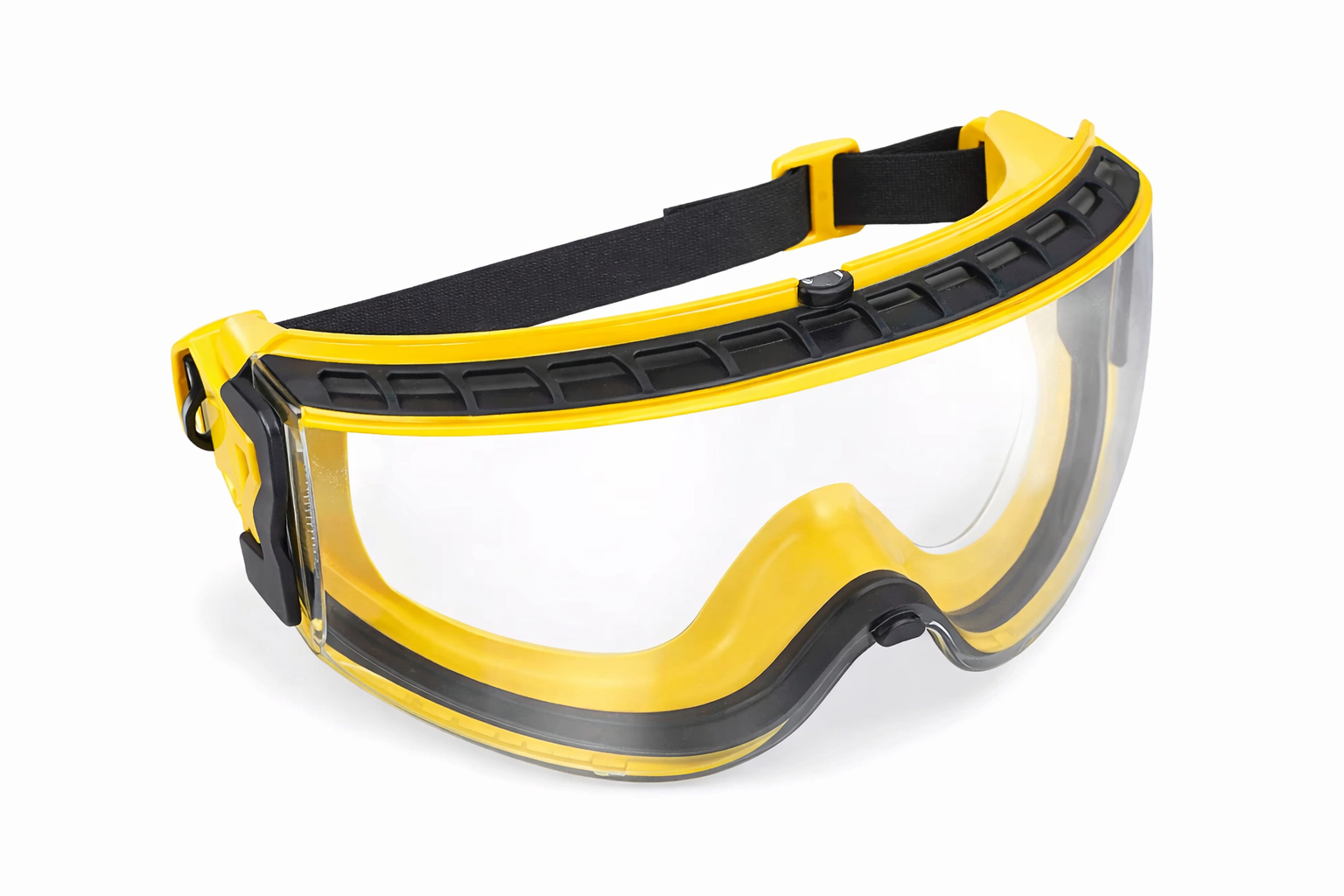 Protect eyes from chemical splash. Soft, comfortable plastic seal. Adjustable. Fits over most prescription glasses. Indirect vent. HydroShield™ coating guarantees fog-free lenses. 99.9% UV protection.