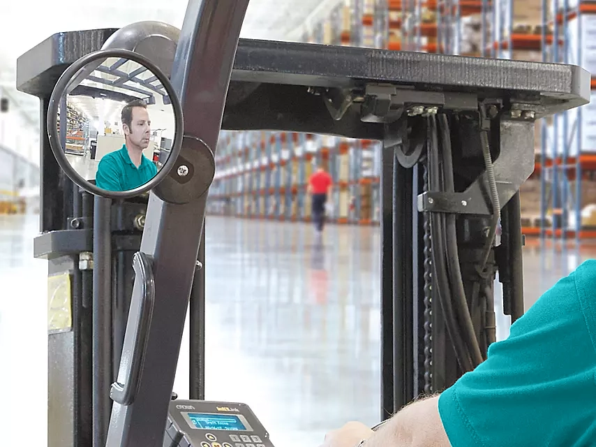 Eliminate blind spots in warehouse aisles and tight dock areas. Glass mirror provides 160° viewing area. Adjustable mounting bracket. Bolt-on Vehicle Safety Mirror – Mounts to forklift cage. Hardware not included. Magnet Mount Vehicle Safety Mirror – Grips onto metal surfaces. Repositionable.
