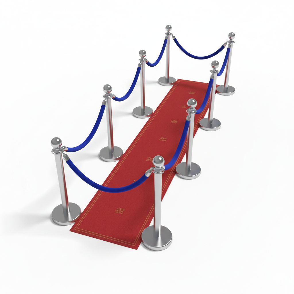 Adds a red carpet look. Recommended for museums, restaurants, theaters and special events. Stainless steel posts are 2″ thick with heavy 19 lb. base. Won’t tip over. Premium 2″ thick velour rope with matching stainless steel snap ends.