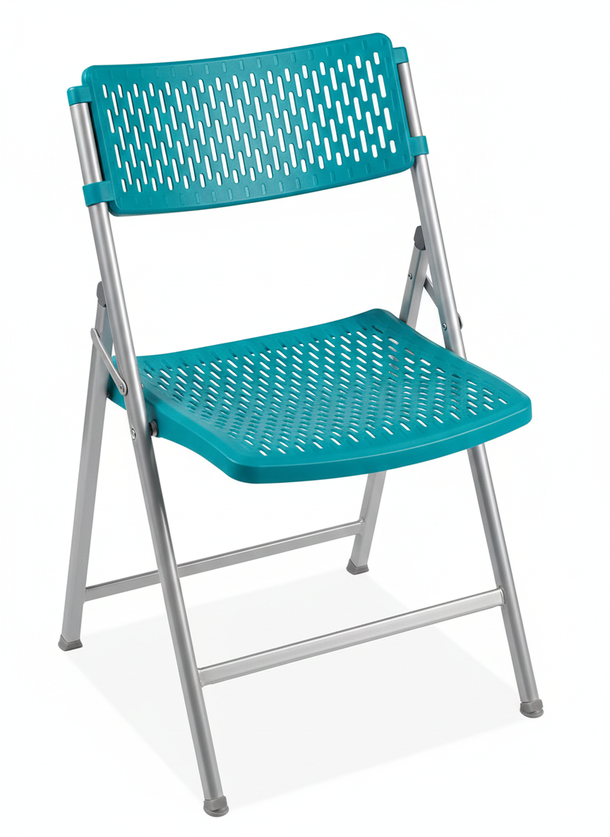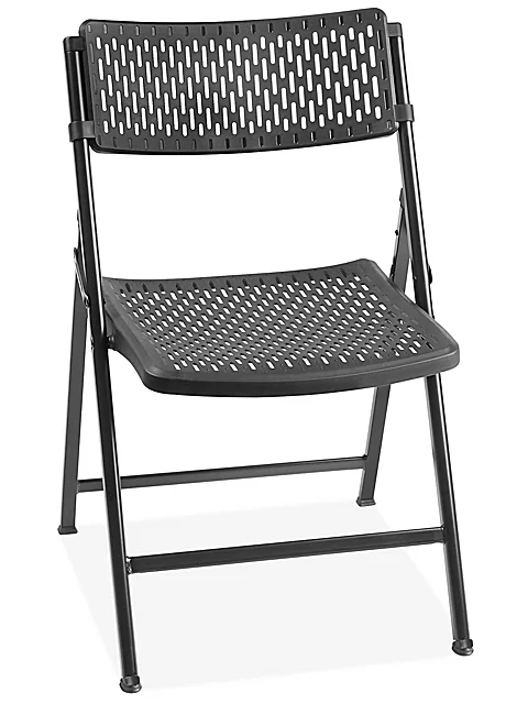 Breathable design. Keep cool at outdoor parties, concerts and sporting events. Comfortable seat and back gently flex for long-term comfort. Easy-to-clean polypropylene resists stains. Powder-coated steel frame. Non-marring plastic feet. Dolly – Speed setup and takedown of banquets, meetings and seminars.