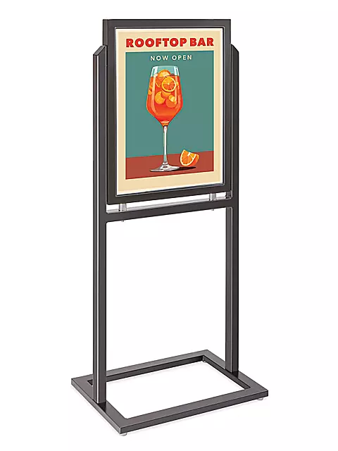 Double-sided. Shatter-resistant plexiglass protects posters.