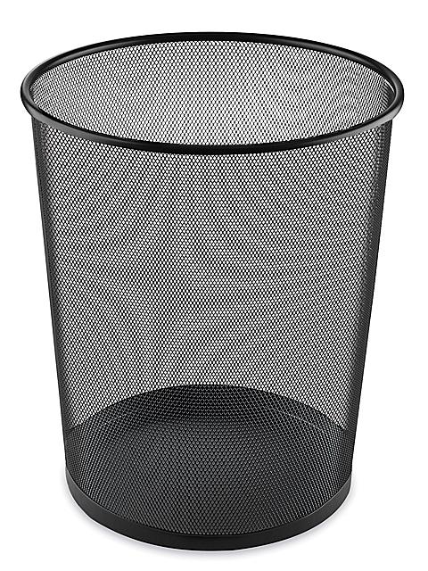 Keep desktops clean, clear and clutter free. Lightweight can fits easily under desk. Open top for easy access. Black wire mesh design with smooth rolled edges. Solid metal base. Use recommended Clear Coreless Liners.