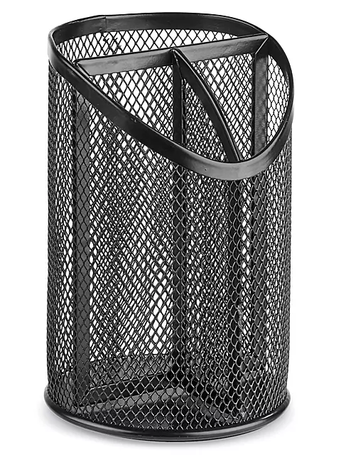 Keep desktops clean, clear and clutter free. Keep pens and pencils close at hand. 3 compartments. Black wire mesh design with smooth rolled edges.