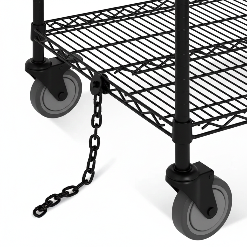 Drag chain attaches to bottom shelf of chrome or stainless steel Wire Shelving.