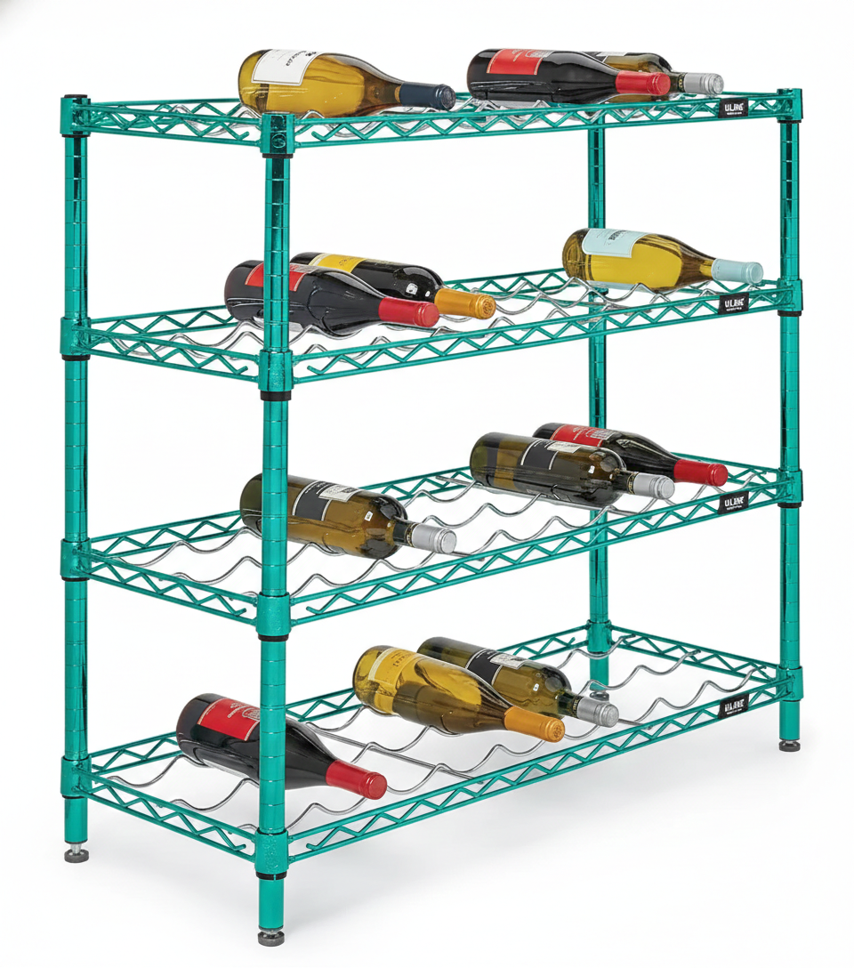 Store and display wine bottles in retail areas, restaurants and commercial kitchens. Cradled shelves keep bottles secure and organized. Shelves adjust in 1″ increments. Open wire maximizes airflow, reduces dirt and dust buildup. NSF Certified.