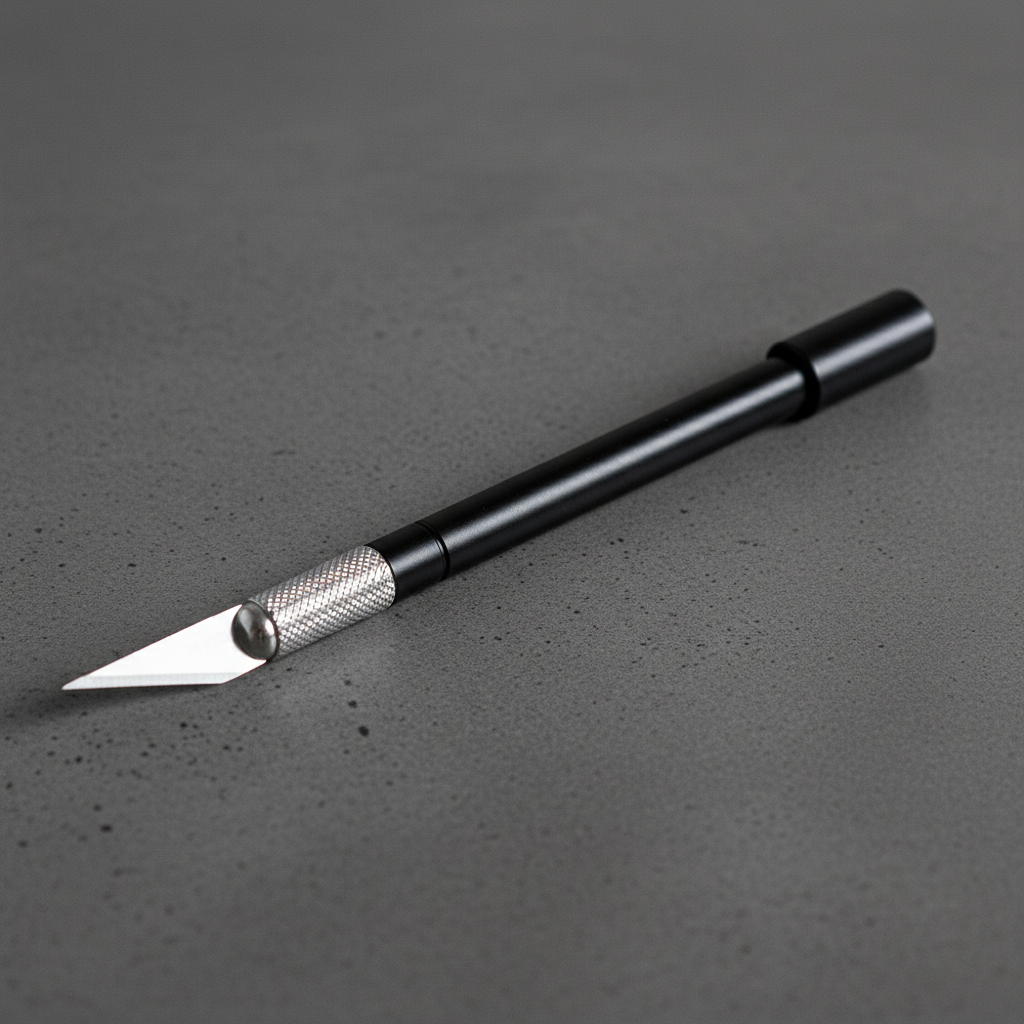 Sharp blade allows for precise cutting. Nonslip textured grip. Aluminum barrel. Use on paper, plastic, cloth and film. Includes 1 blade.